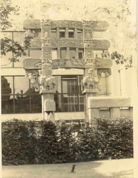 A replica of the famous Sanchi Stupa at the entrance of Berlin Museum. The stupa is an important monument of Indian architecture. It was originally commissioned by the emperor Ashoka in the 3 rd century BCE. Photo taken in 1971.